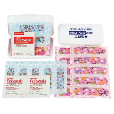 | 기타사항 | •캐릭터밴드 15p,알콜스왑 2P •수량 : 1000EA •SIZE:105×60×13 (mm) •1BOX:500EA •스티커비 별도, 캐릭터밴드 1P추가 30원, 알콜스왑 1P 추가 30원 •종이케이스 200원 추가 ※상품 내 모든 구성상품들은 수급상황에 따라 예고없이 변동 될 수 있습니다. |