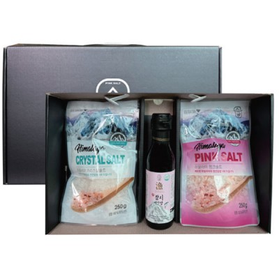 | 기타사항 | •구성품:참치어간장250㎖/핑크소금250g/크리스탈소금250g •1C/T = 14ea ㆍsize = 36×22×7cm |